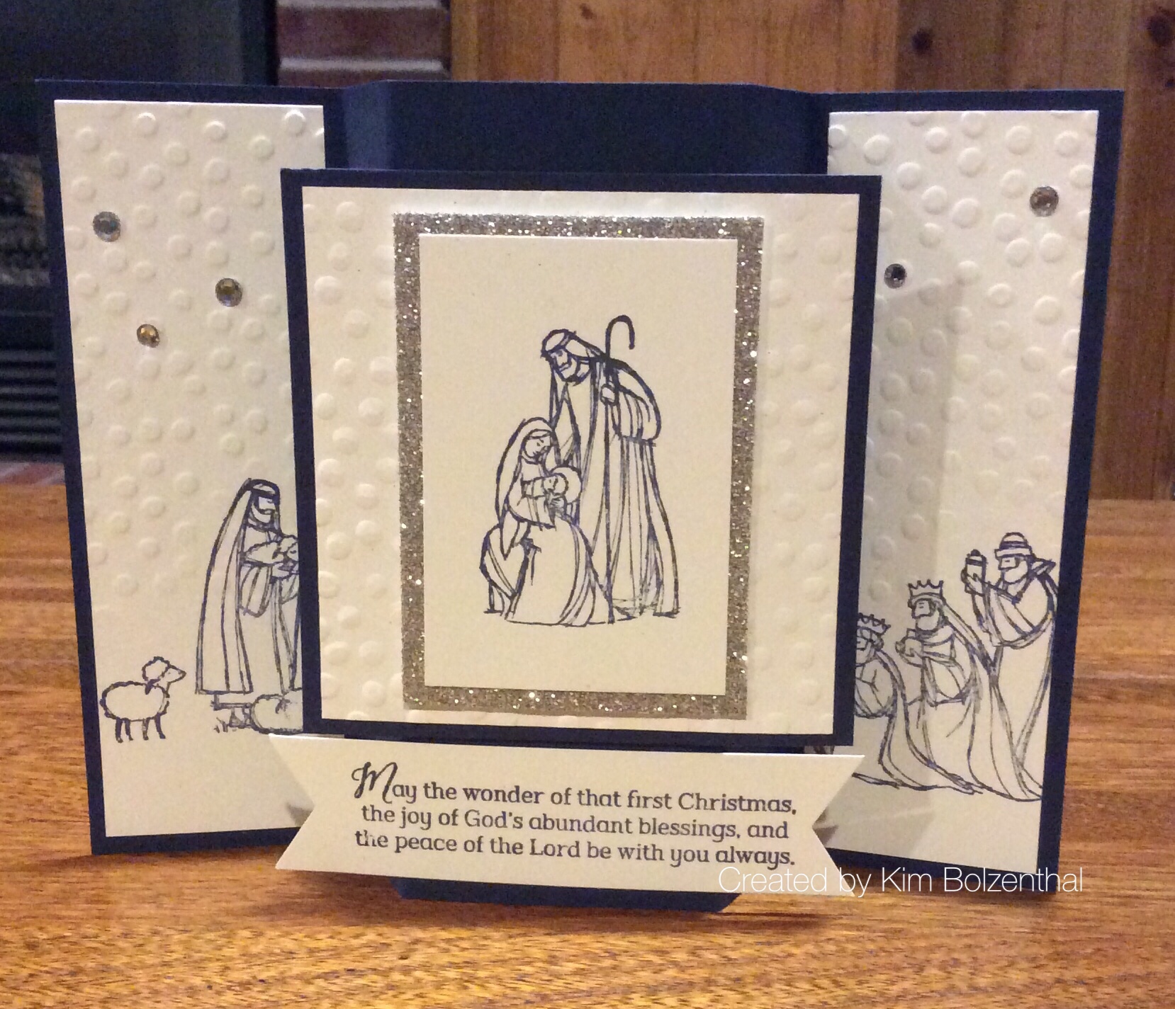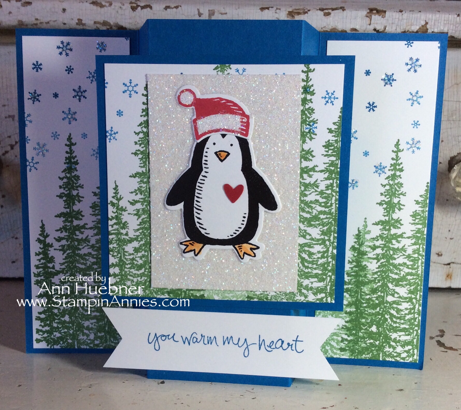First of all, I want to send a ‘Shout Out’ to Kim Bolzenthal, in our Stampin’ Annie’s Stampers group… Thanks for sharing this beautiful card with us at our Fall Team meeting. This card was my inspiration for creating the cards in this post. I Love the simplicity of this card for Christmas! Quick to stamp with the ‘All Ye Faithful’ stamp set and Night of Navy ink. Love this!!! Thanks for sharing Kim!