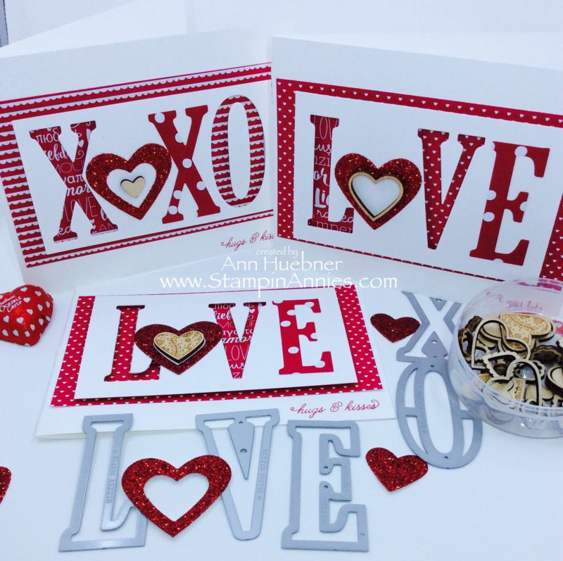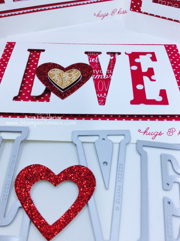 Create a card to send Big LOVE or XOXO – Hugs & Kisses. If the Large Letters Framelits are on your wish list, then Now is the best time to put that order in! It’s Sale-a-Bration time and that means you could pick two items out of our Sale-A-Bration Flyer with the purchase of the Large Letters Framelits and the Sending Love Designer Specialty Paper Stack used to create these fun cards for Valentine’s Day.