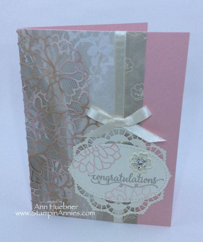 These cards were made with everything from the Falling In Love Suite in the 2017 Occasions Catalog. I Love how everything coordinates and blends together!❤️ The new doilies have so much details and the best part of them is that they are double sided… Vanilla on one side and White on the other so they can be used with any project! The new satin ribbon and floral embellishments are also beautiful new additions to our product line. The ribbon is so soft and easy to work with.